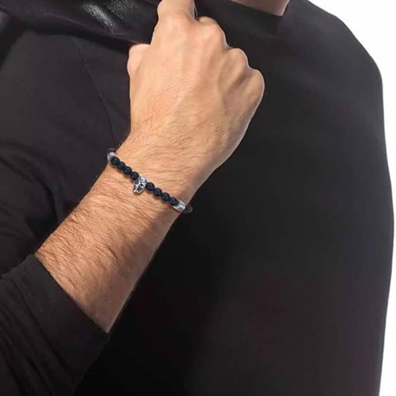 Killer Deals Cruelty-Free Vegan Leather Skull Charm Beaded Bracelet- S/M