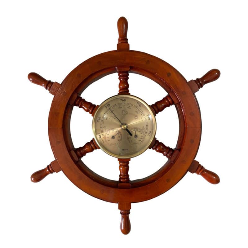 Killer Deals Vintage Wooden Ship Steering Wheel Weather Station Decor