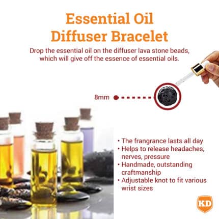 • Two beautiful diffuser bracelets made from lava stone beads that act as a sponge to soak up the essential oil of your choosing